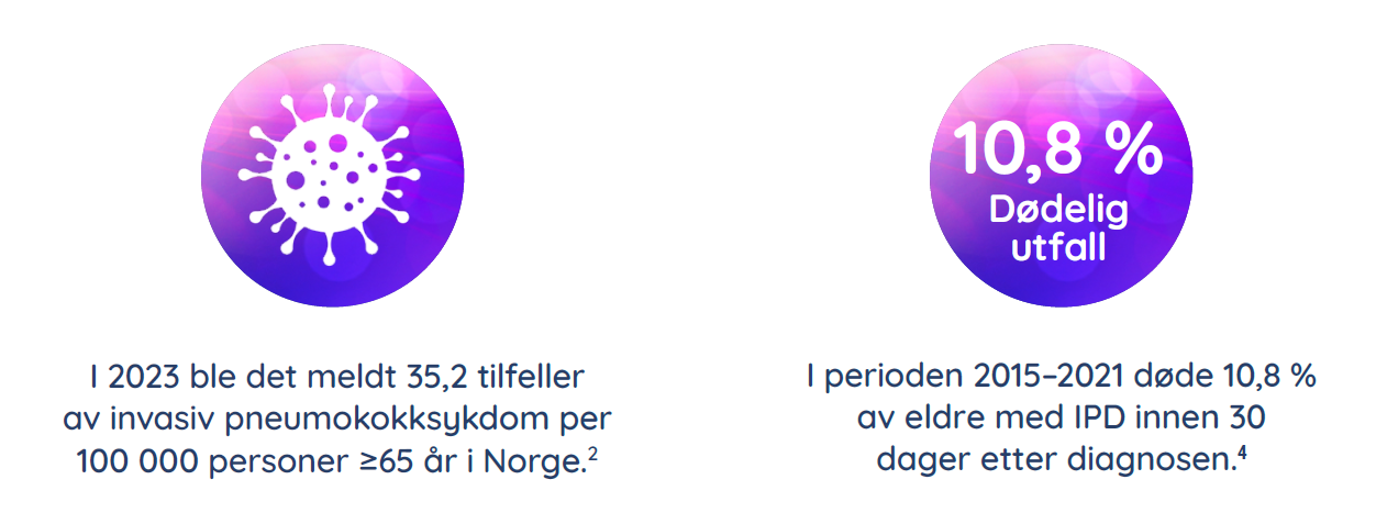 som sto for 82–89 % av invasiv pneumokokksykdom (IPD) hos personer ≥65 år i perioden 2015–2023.2*